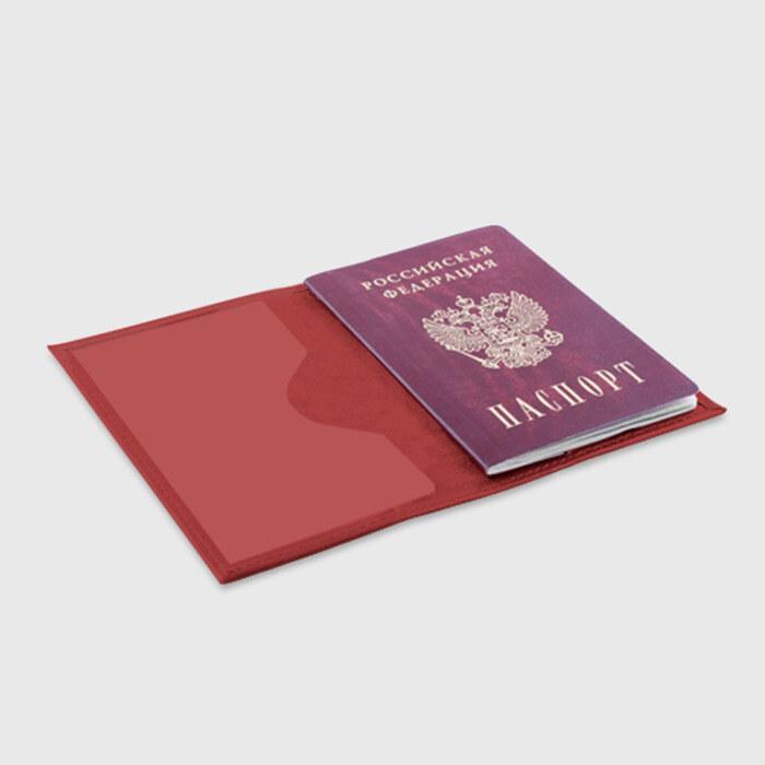 Обложка для паспорта сделана из натуральной матовой кожи с бархатистой внутренней поверхностью. Листы фиксируются прозрачными пластиковыми креплениями.