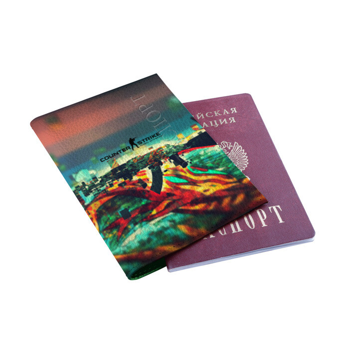 Обложка для паспорта матовая кожа CS GO:Aquamarine Revenge AK47