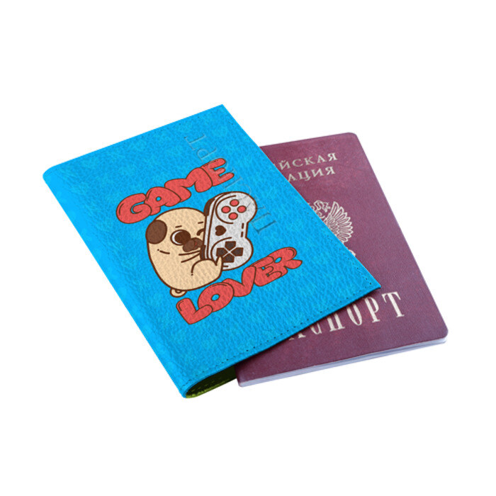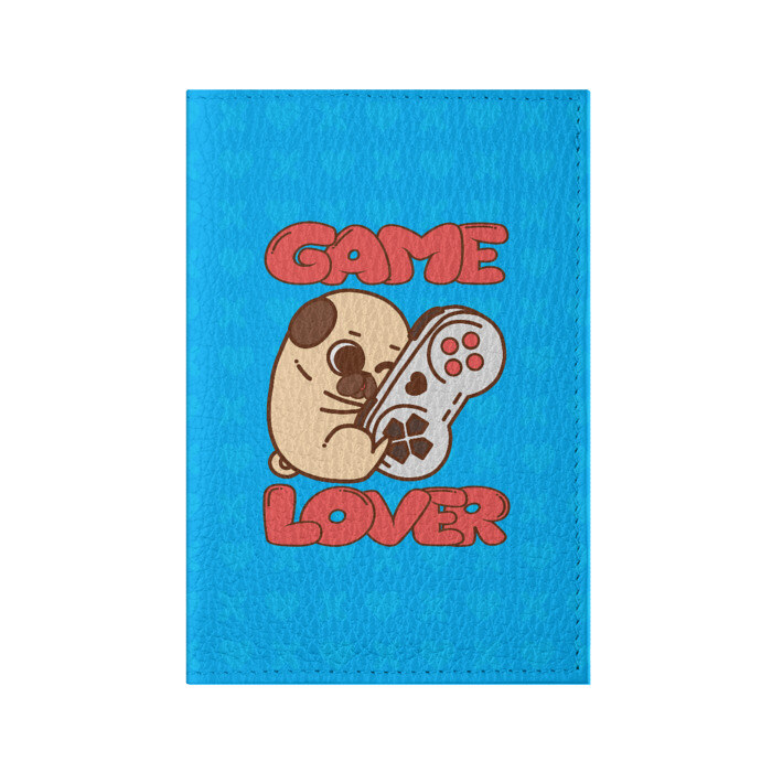 Обложка для паспорта матовая кожа с принтом Мопс Геймер