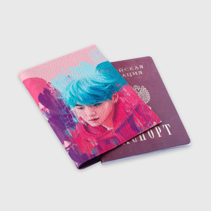 Обложка для паспорта матовая кожа с принтом BTS (Colors)