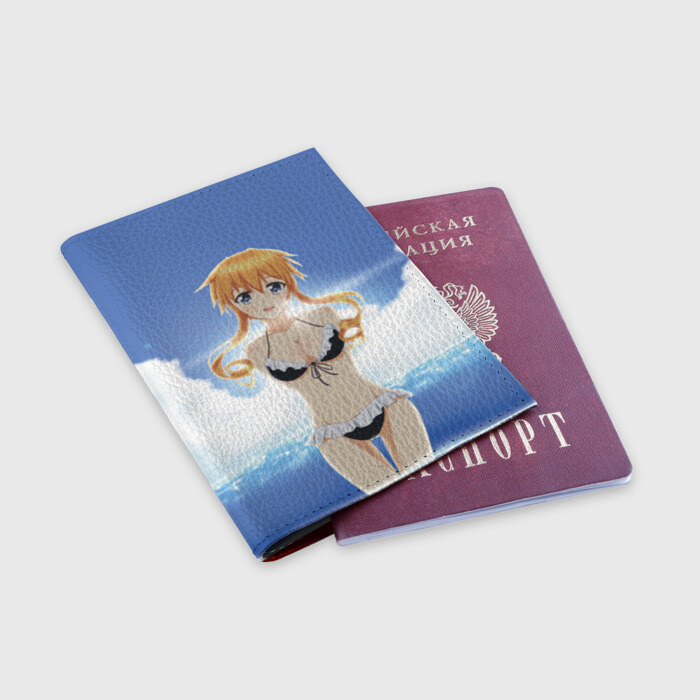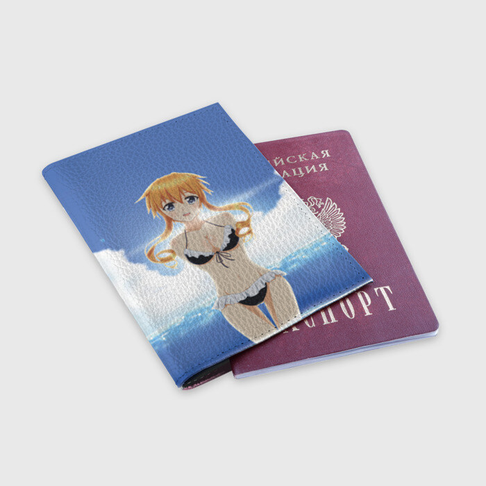 Обложка для паспорта матовая кожа с принтом Пляж Аниме