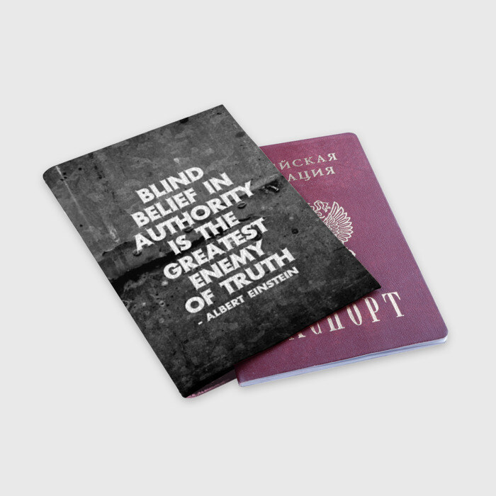 Обложка для паспорта матовая кожа с принтом Альберт Эйнштейн Цитата