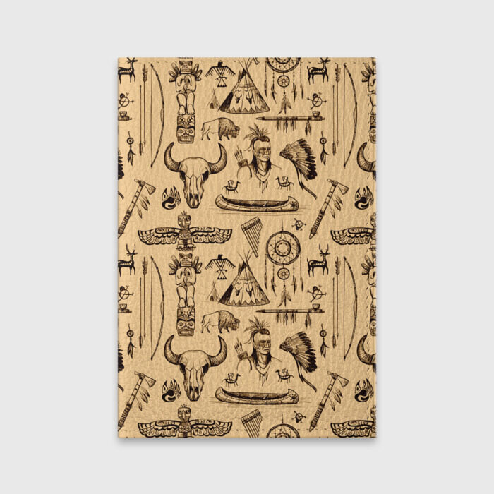Обложка для паспорта матовая кожа с принтом Индейский паттерн