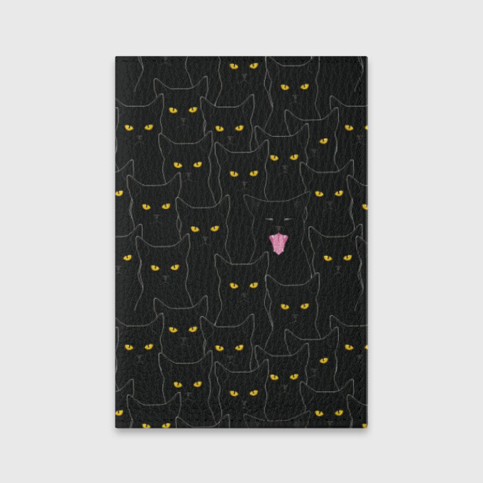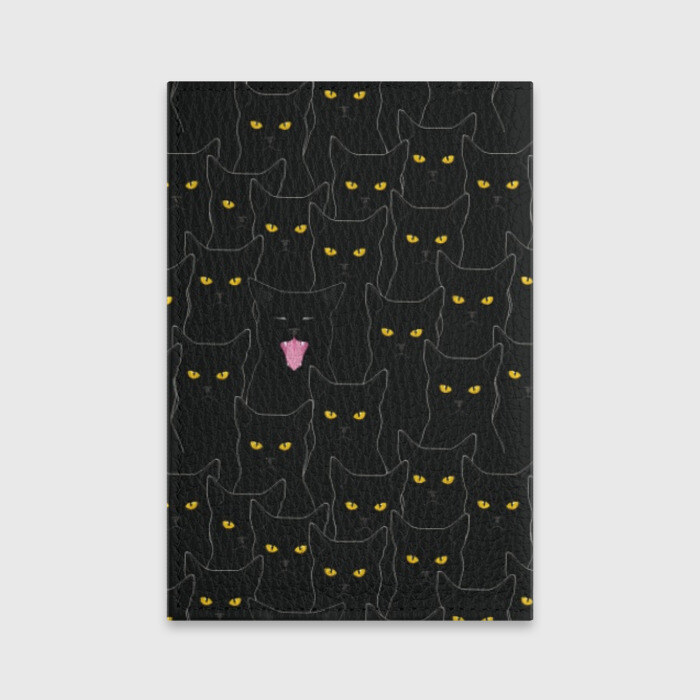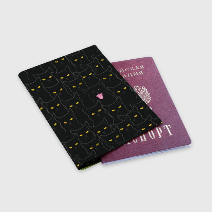 Обложка для паспорта матовая кожа с принтом Чёрные коты