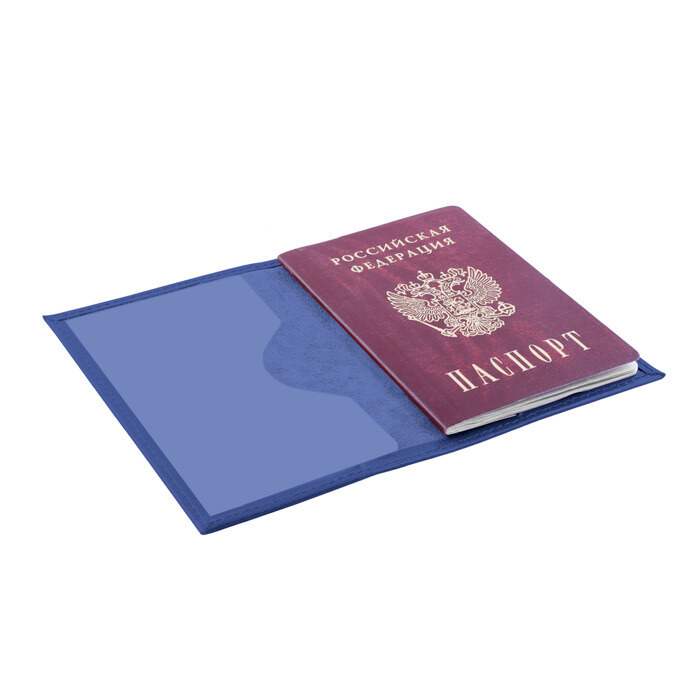 Обложка для паспорта сделана из натуральной матовой кожи с бархатистой внутренней поверхностью. Листы фиксируются прозрачными пластиковыми креплениями.