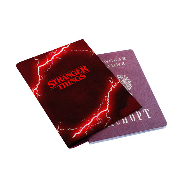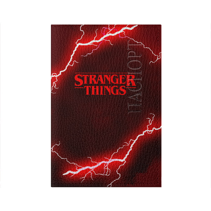Обложка для паспорта матовая кожа с принтом STRANGER THINGS