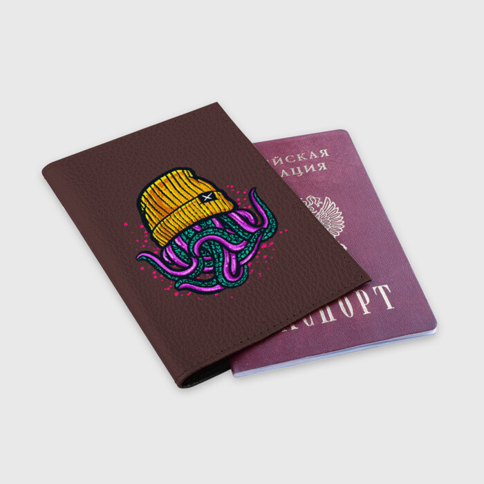 Обложка для паспорта матовая кожа с принтом Octopus(Lil Peep, GBC)