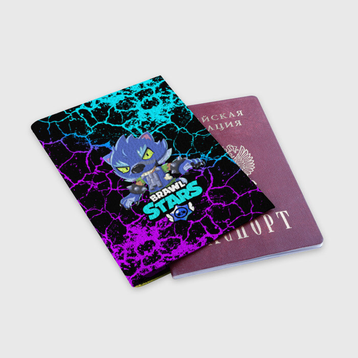 Обложка для паспорта матовая кожа BRAWL STARS LEON ОБОРОТЕНЬ.