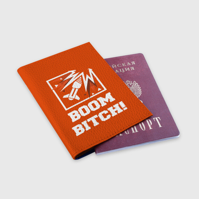 Обложка для паспорта матовая кожа с принтом Boom Bitch!