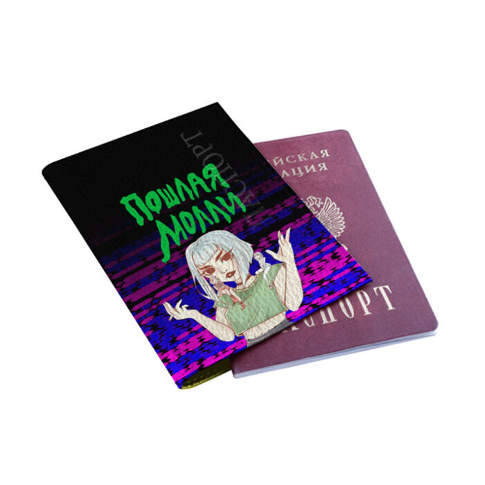 Обложка для паспорта матовая кожа с принтом ПОШЛАЯ МОЛЛИ.