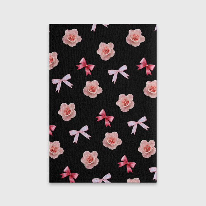 Обложка для паспорта матовая кожа с принтом Бантики и розочки
