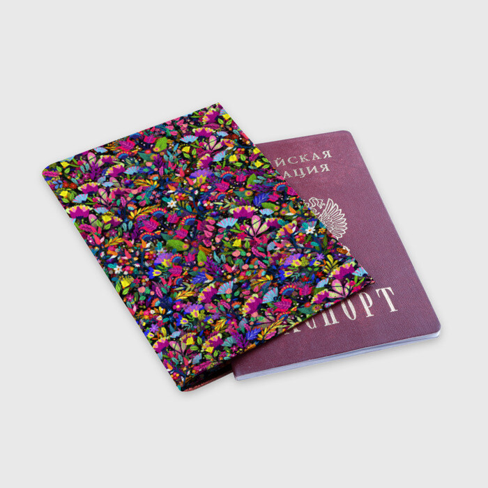 Обложка для паспорта матовая кожа с принтом Мистические цветы