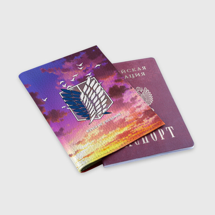 Обложка для паспорта матовая кожа с принтом Wings of freedom