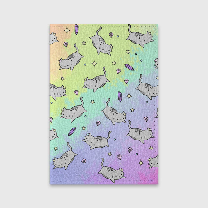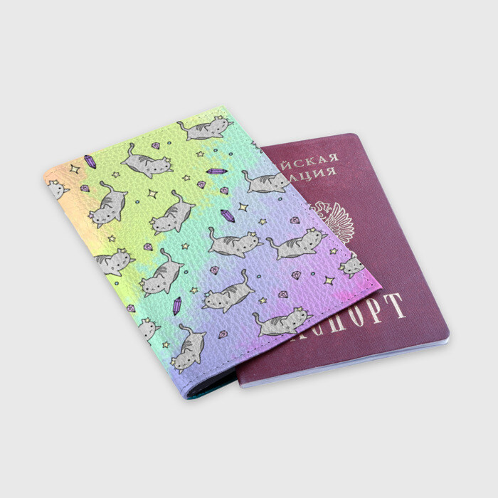 Обложка для паспорта матовая кожа с принтом КАВАЙНЫЕ КОТИКИ