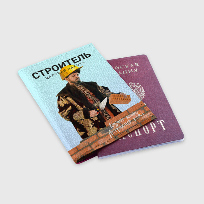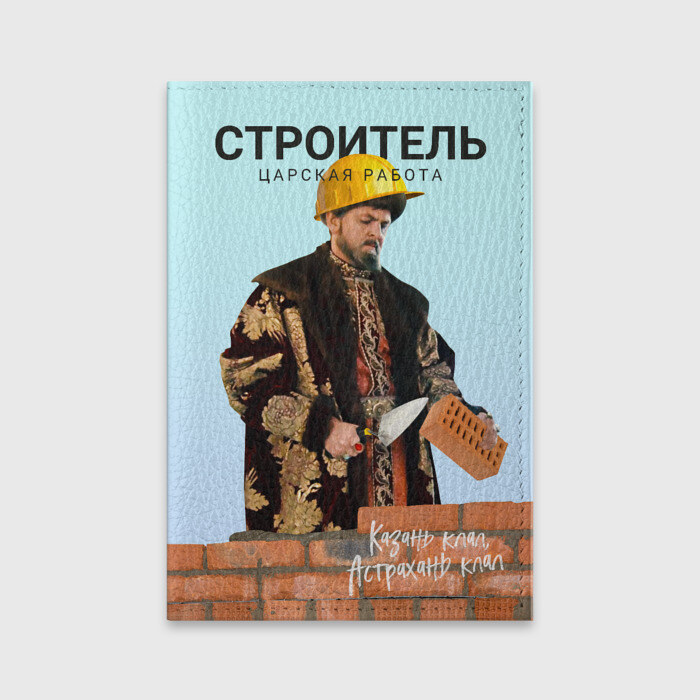 Обложка для паспорта матовая кожа с принтом Иван Васильевич Строитель