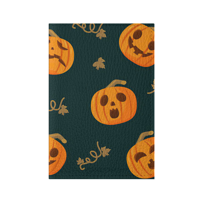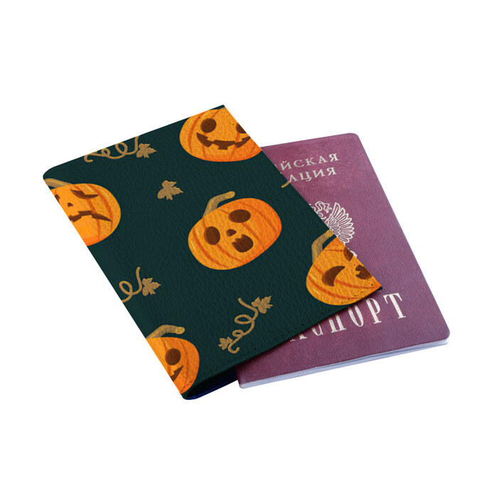 Обложка для паспорта матовая кожа с принтом Осенние тыквы