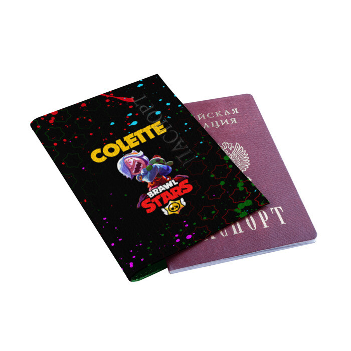 Обложка для паспорта матовая кожа BRAWL STARS COLETTE.
