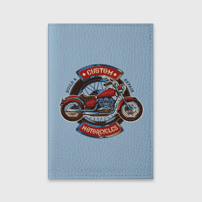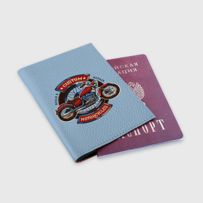 Обложка для паспорта матовая кожа с принтом Кастом байк