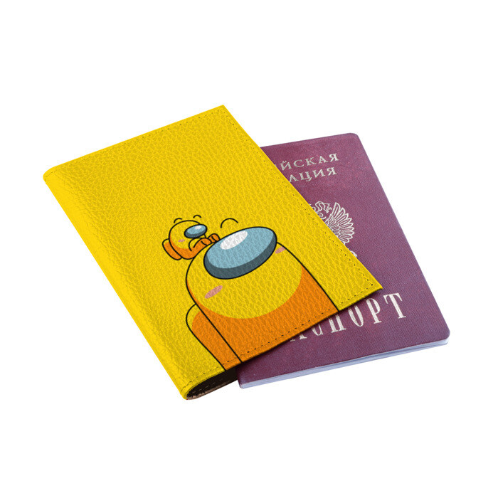 Обложка для паспорта матовая кожа AMONG US YELLOW