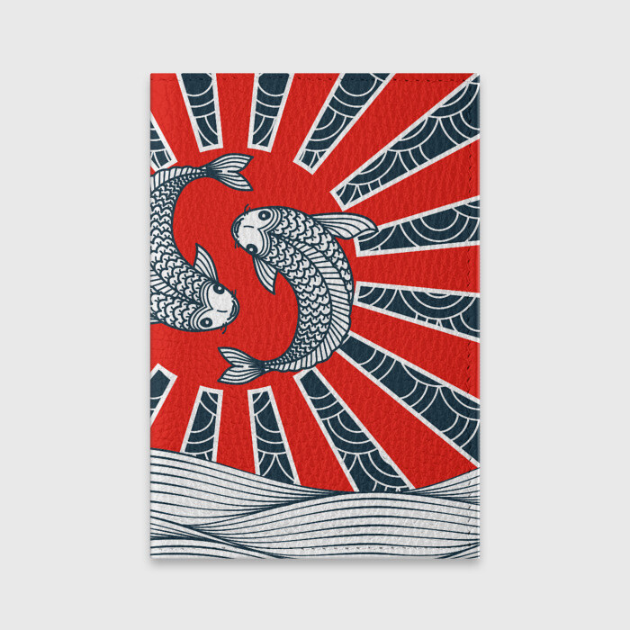 Обложка для паспорта матовая кожа Карпы Кои
