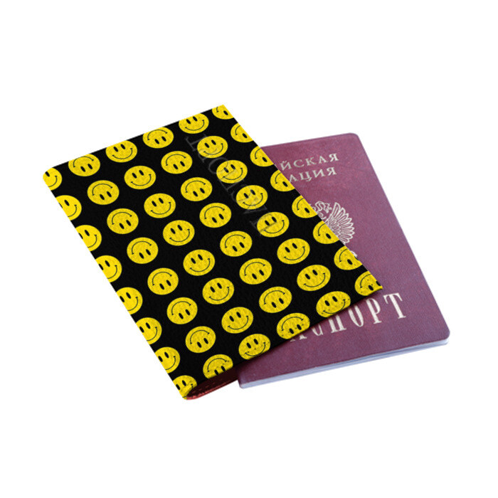 Обложка для паспорта матовая кожа с принтом Смайлики