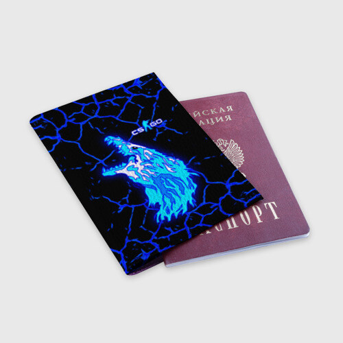 Обложка для паспорта матовая кожа с принтом CS GO Howl Neon
