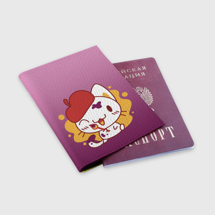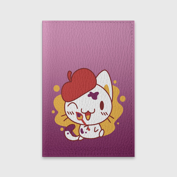 Обложка для паспорта матовая кожа с принтом кот художник творец