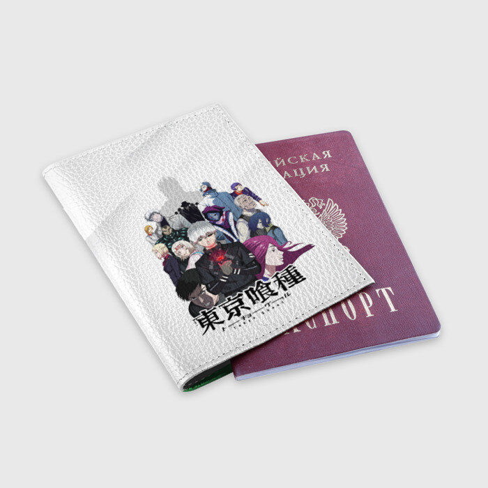 Обложка для паспорта матовая кожа с принтом Токийский гуль персонажи