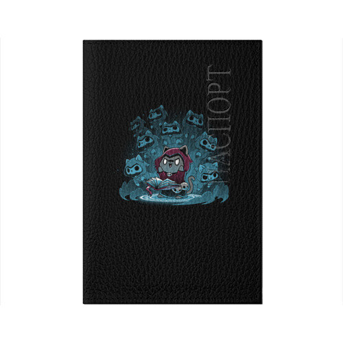 Обложка для паспорта матовая кожа с принтом Кот маг