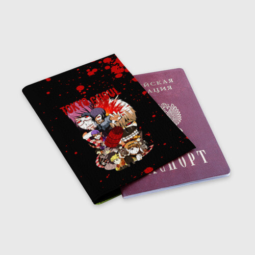 Обложка для паспорта матовая кожа с принтом Токийский гуль персонажи