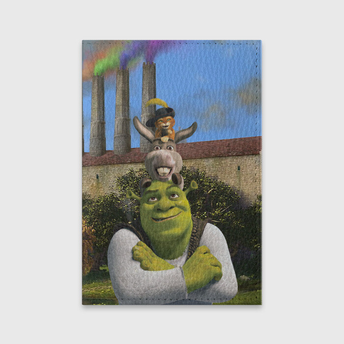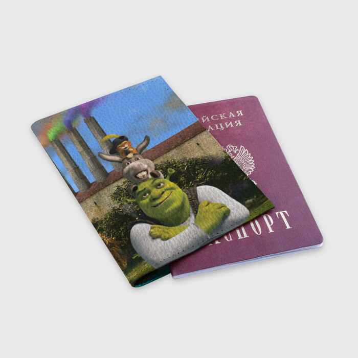 Обложка для паспорта матовая кожа с принтом Шрек Кот и Осёл