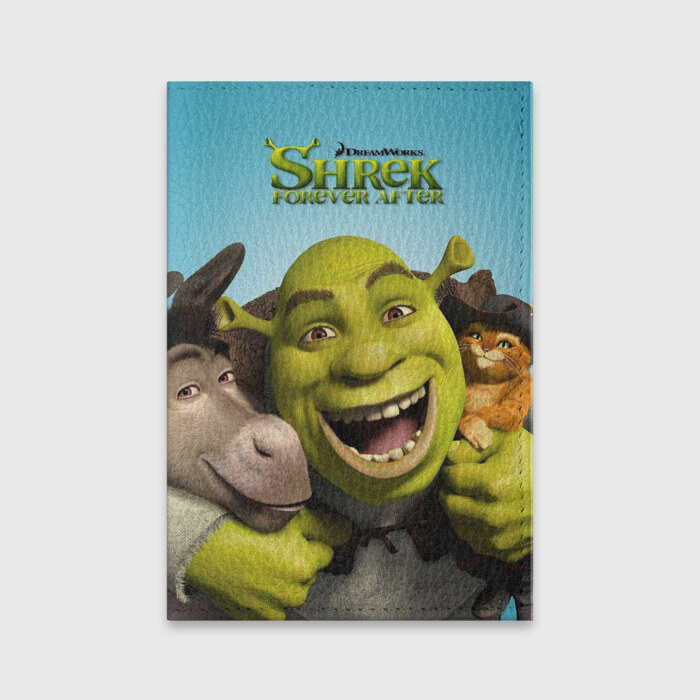 Обложка для паспорта матовая кожа шрек, осел, кот