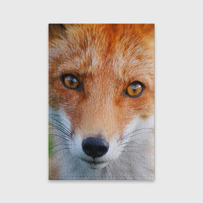Обложка для паспорта матовая кожа с принтом Крупно мордочка лисы