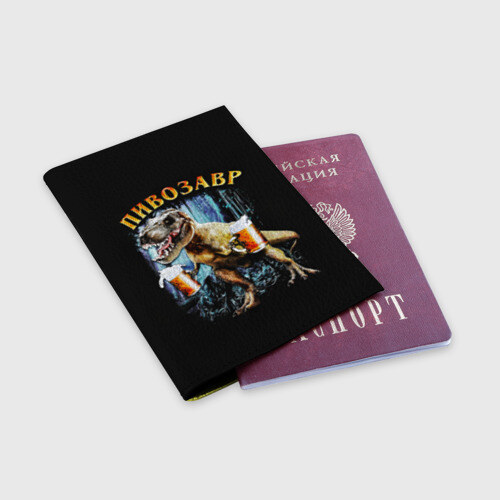 Обложка для паспорта матовая кожа с принтом Пивозавр