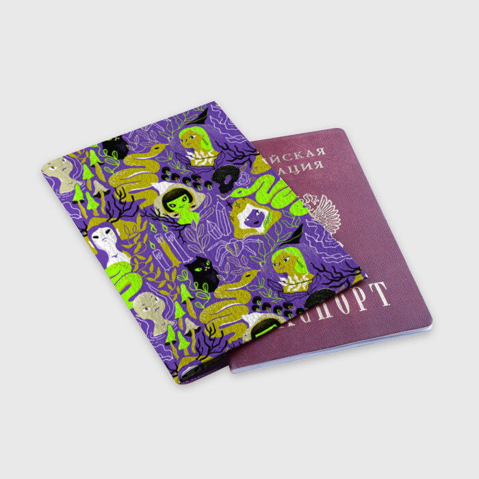 Обложка для паспорта матовая кожа с принтом Шабаш