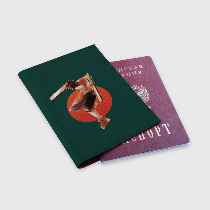 Обложка для паспорта матовая кожа с принтом Дэндзи в прыжке