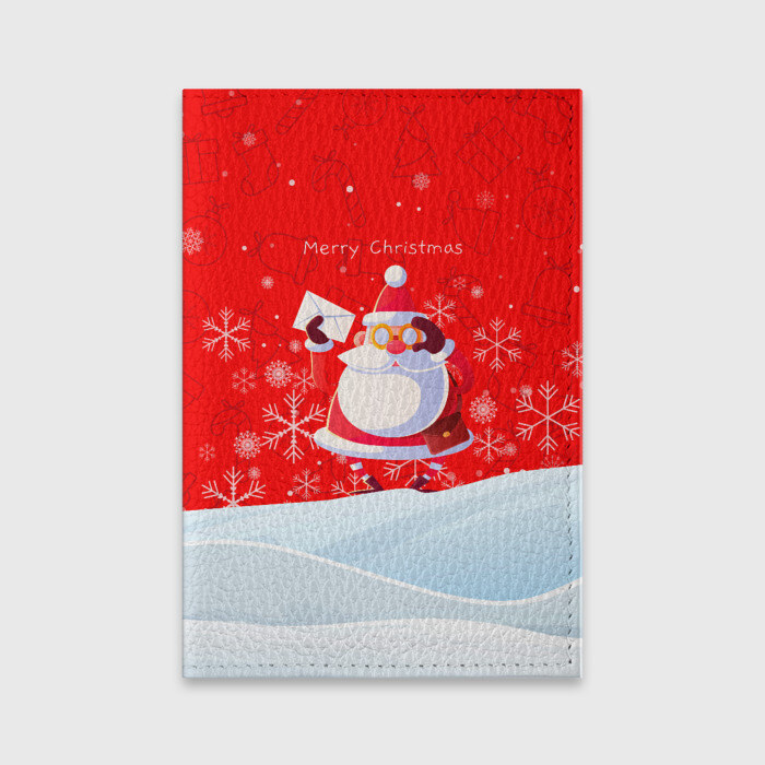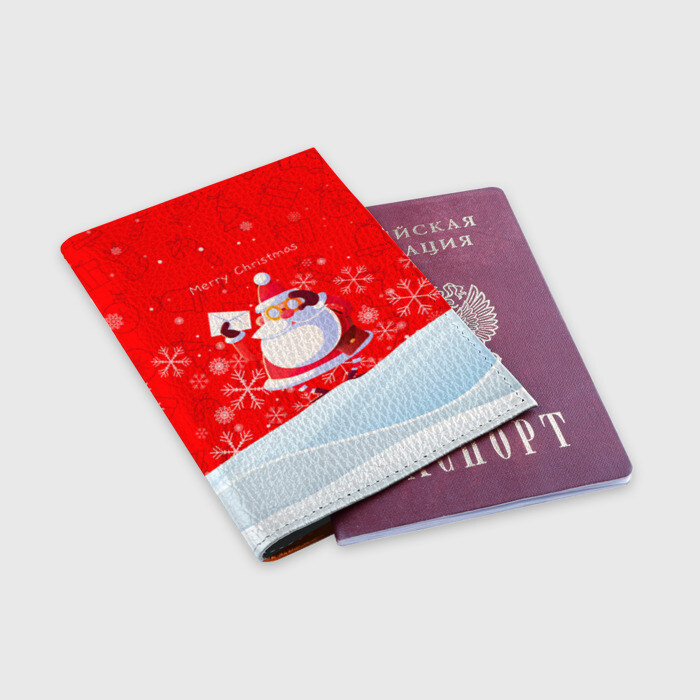 Обложка для паспорта матовая кожа с принтом Дед Мороз с подарочным конвертом.