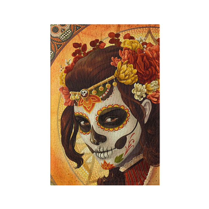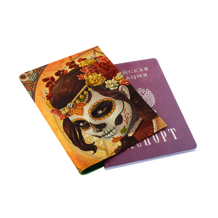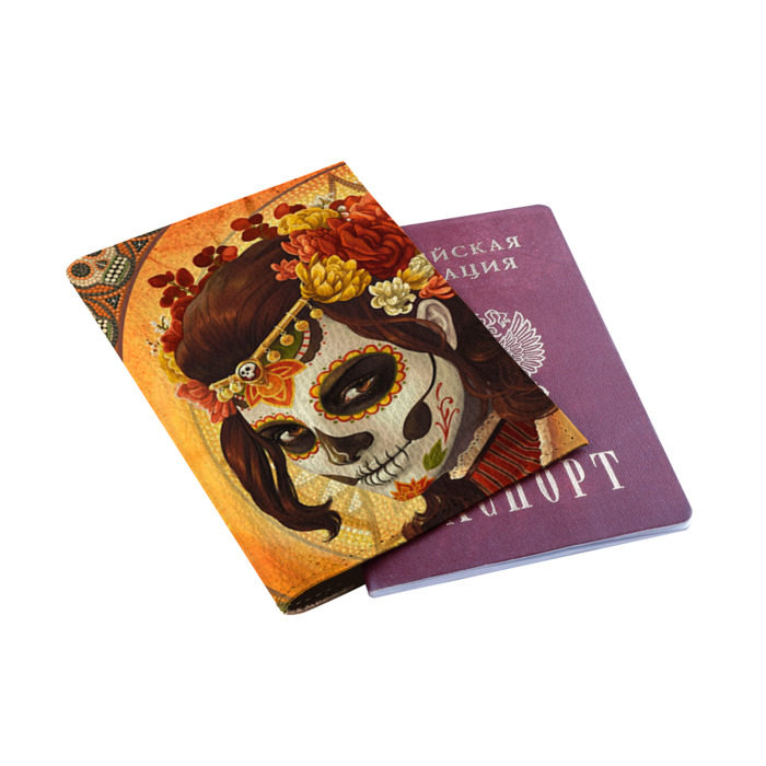 Обложка для паспорта матовая кожа Девушка. Сахарный череп