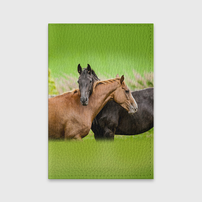 Обложка для паспорта матовая кожа с принтом Лошади 2