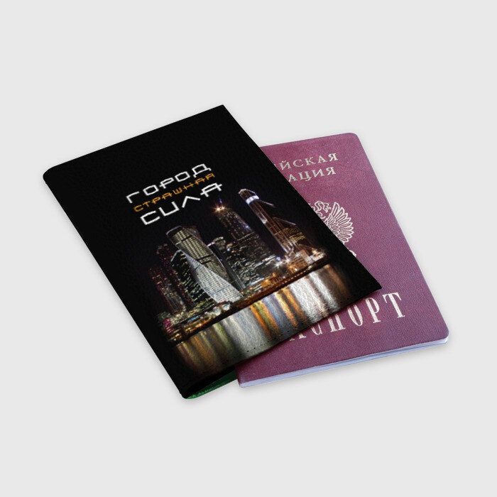 Обложка для паспорта матовая кожа с принтом Город - страшная сила