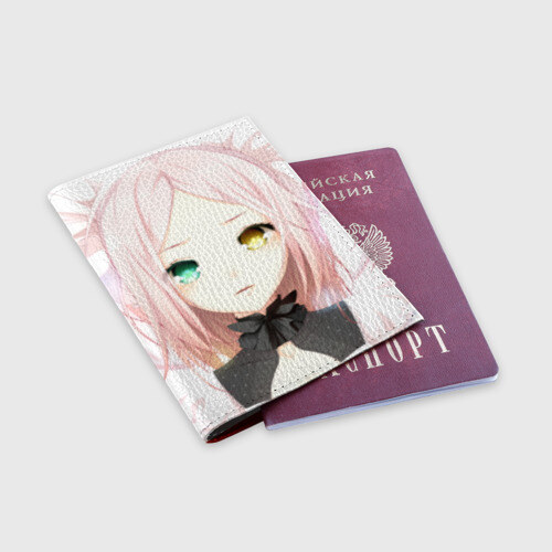 Обложка для паспорта матовая кожа с принтом Девочка аниме
