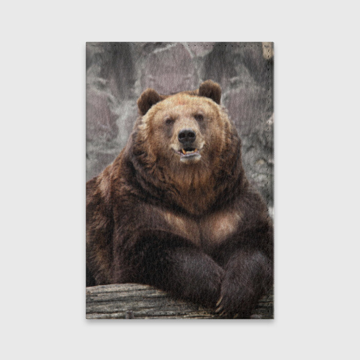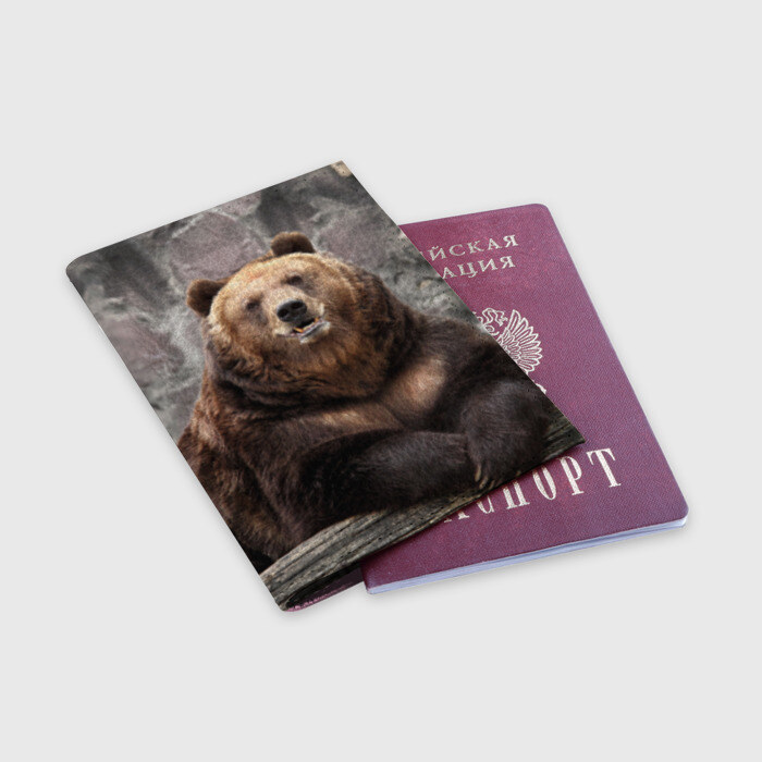 Обложка для паспорта матовая кожа с принтом Русский медведь