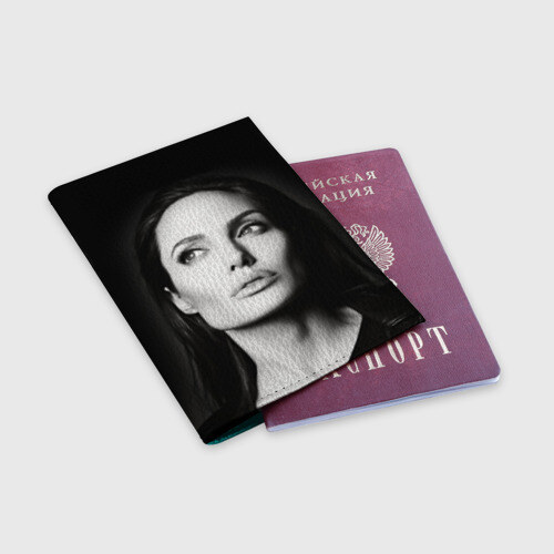 Обложка для паспорта матовая кожа с принтом Анжелина Джоли
