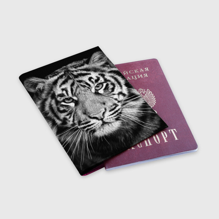Обложка для паспорта матовая кожа с принтом Красавец тигр
