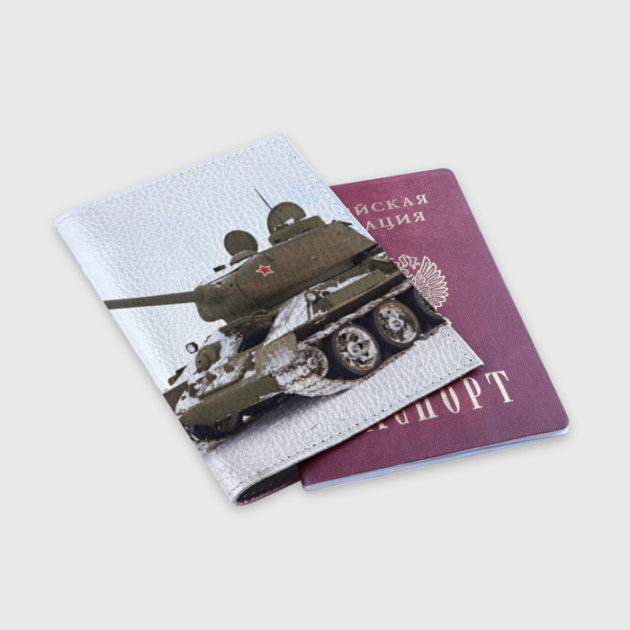 Обложка для паспорта матовая кожа с принтом Танк т34-85