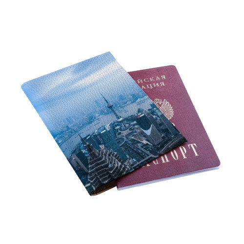 Обложка для паспорта матовая кожа с принтом Шанхай
