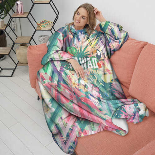 Мягкий плед с коротким ворсом, в который приятно укутаться в прохладном помещении. Одна из сторон покрыта принтом, вторая остается белой. Плед не мнется и не растягивается, принт остается ярким после стирки.
