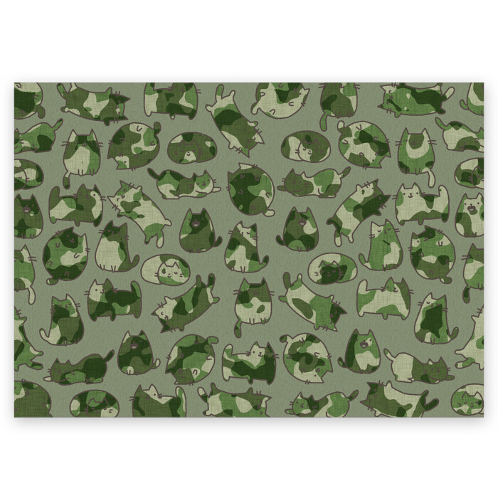 Поздравительная открытка с принтом Камуфляж с котиками (хаки)