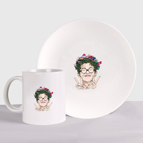 Кружка изготовлена из высококачественной белой керамики. Тарелка изготовлена из фарфора. Принт наносится на бока кружки: два изображения или только с одной стороны. На тарелку принт наносится на плоскую часть.