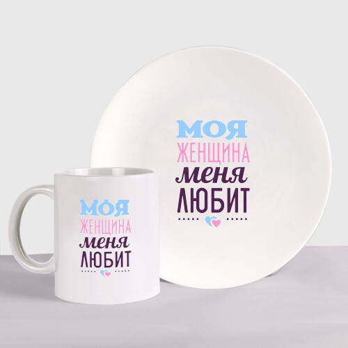 Набор: тарелка + кружка с принтом Моя женщина меня любит